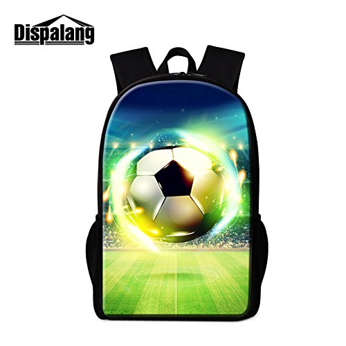 Dispalang Soccer School Backpack for Children Football Printed Bookbag for Boys Outdoor Back Pack