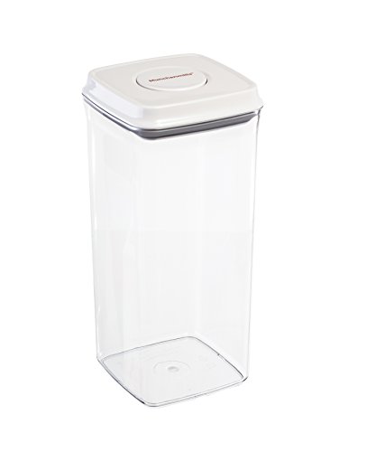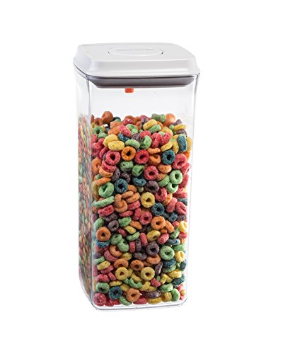 - LARGE SQUARE CONTAINER: This tall receptacle, with a 2.6 quart, 10.4 cup capacity, is ideal for storing spaghetti, linguini, lasagna, 2.5lb bags of flour or sugar, cereals or other bulky items.
