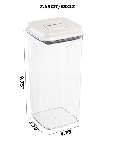Food Storage Containers - Airtight Seals with Push Button - Nesting Stackable Plastic Kitchen and Pantry Container With Rubber Seal - 2.65 Quarts 85 oz - by Gee Gadgets