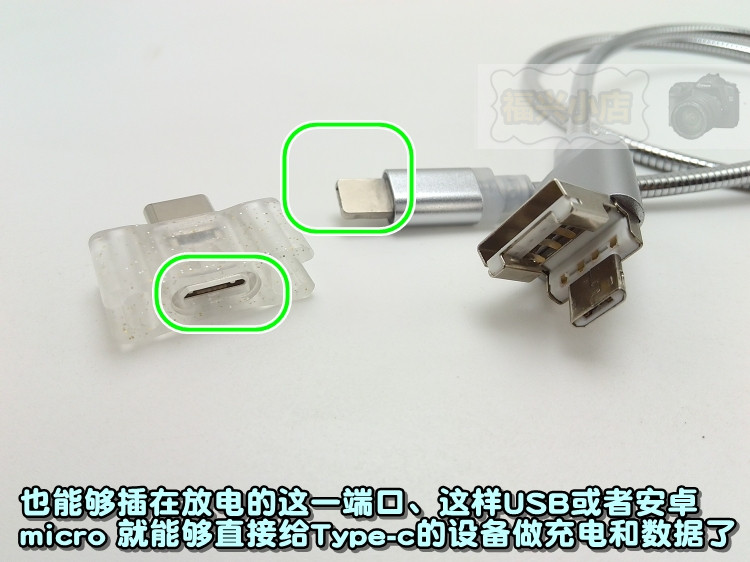 It is very convenient to use, the USB interface can be turned into a dual-use interface that becomes usb+Android, that is, an Android phone that supports OTG function, whether you are a Type-c interface Android, or a MICRO Android interface, can give IOS, MICRO, Charging with a Type-c interface phone/device.