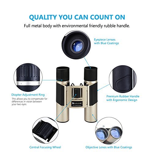 ELECLOVER eleclover 10x 25포터블 오름 정의Full Coated Optics With블루Film쌍안경for아웃도어/헌팅/ Bird Watching /관광/콘서트망원경 오페라 글라스