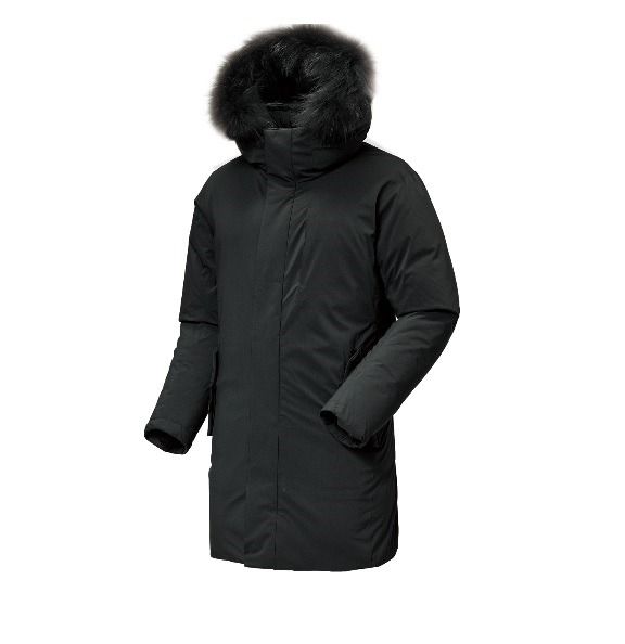 베이직한 디자인의 허벅지를 덮는 기장의 중형 덕다운후드 라쿤 디테일과 안감 소매부분 벨보아 적용티타늄 안감을 패치하여 보온성을 높인 덕다운 자켓