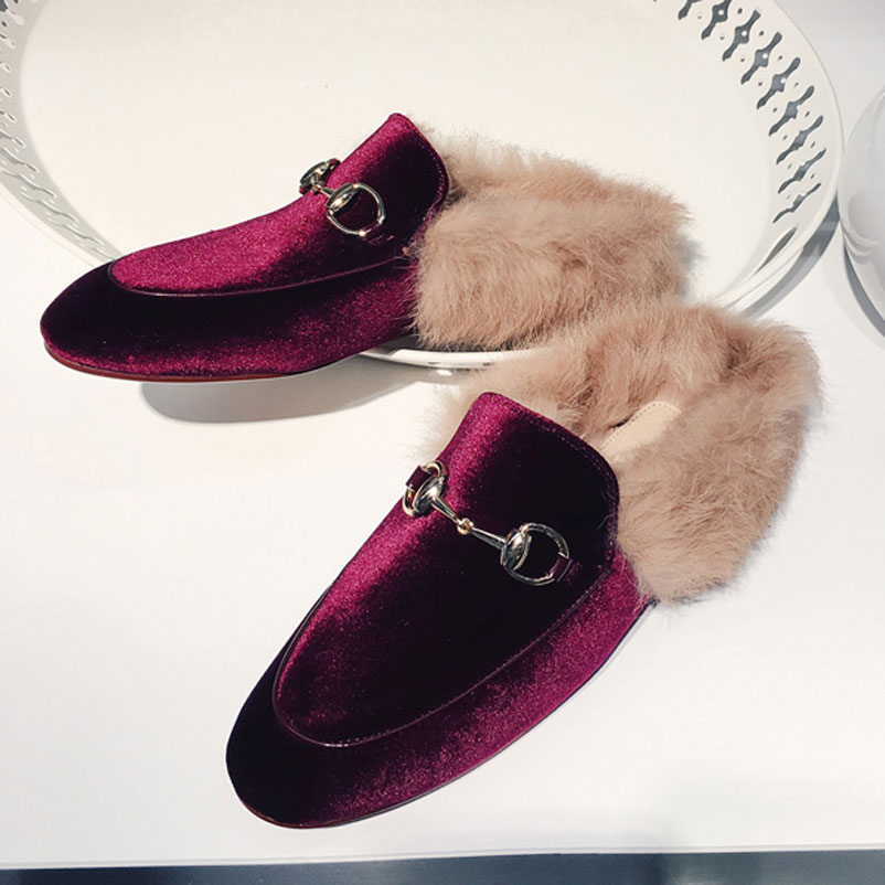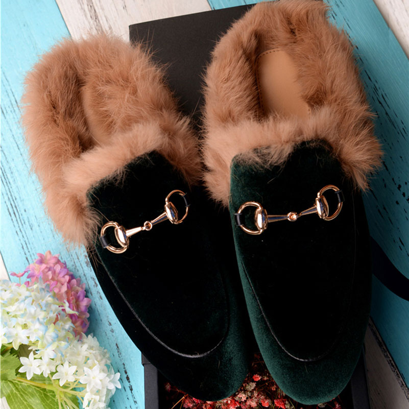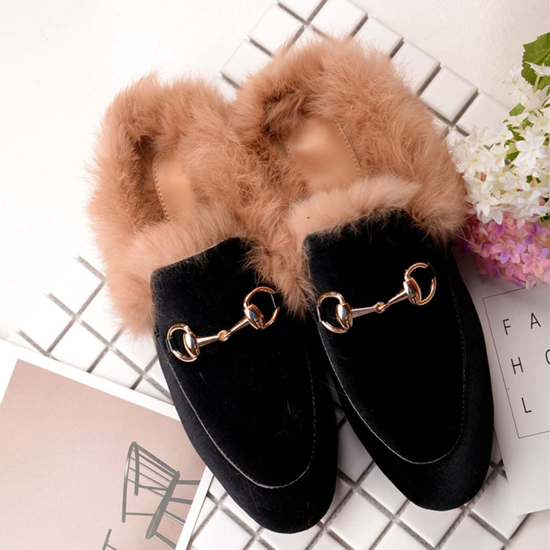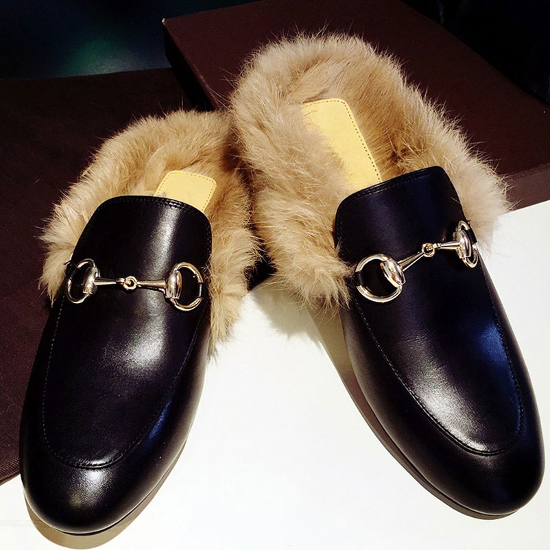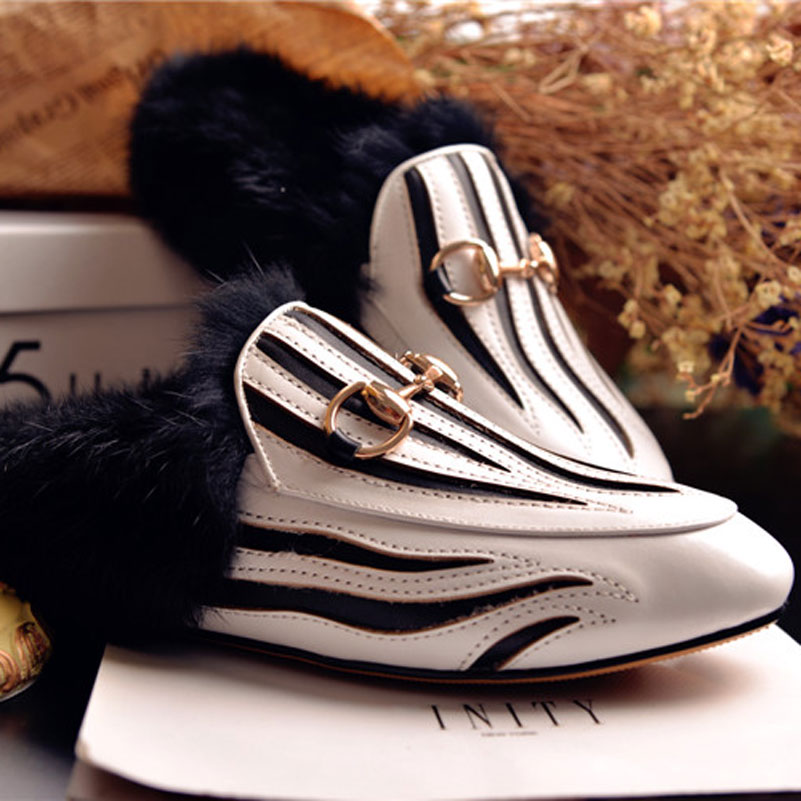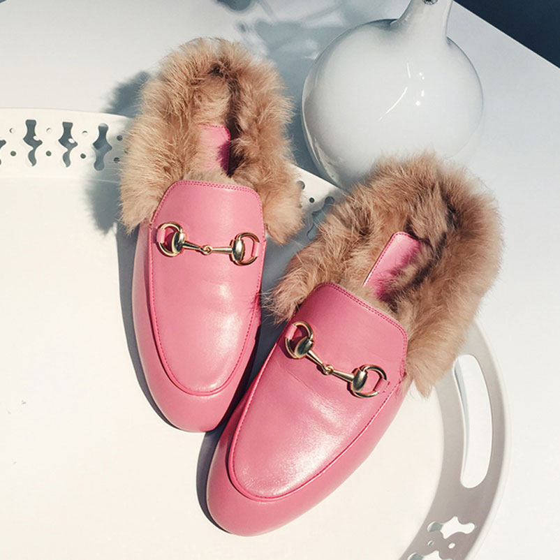 2017 Fashion Women Real Fur Shoes Genuine Leather Womens Slipper