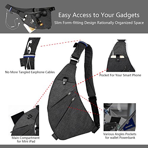 Sling Backpack Shoulder Chest Crossbody Bag Lightweight Casual Outdoor Sport Travel Hiking Multipurpose Anti Theft Cross Body Back Pack Bags Up to 7.9 Inch Tablet for Men Women