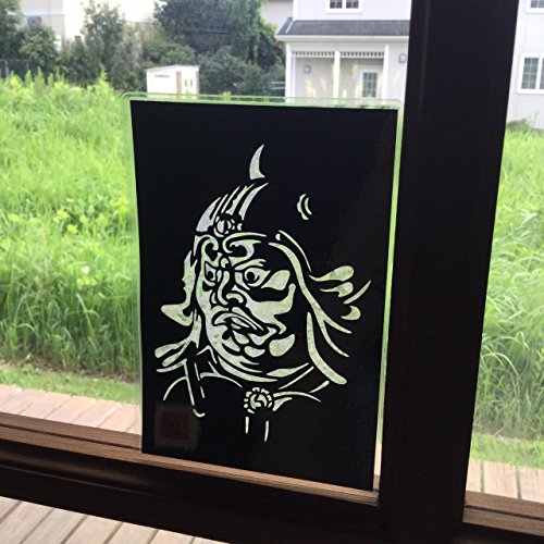 Japanese art collage KIRIE “Todaiji Jikokuten - The face -” Dhrtarastra (Buddhist deity) one of the Shitenno (the Four Heavenly Kings) Made by Washi(Japanese paper) Wakakami color, 4” x 6”