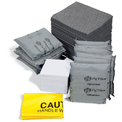 -. Feature : Packed to replace used absorbents from your Pig spill kit in small wall-mount cabinet / Pig mat and pillows absorb; wipers clean surfaces and hands / Temporary disposal bags with ties help make cleanup faster / Only Pig spill kit refills feature Pig absorbents proven for rapid response / Absorbs oil, coolants, solvents and water