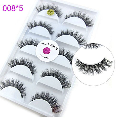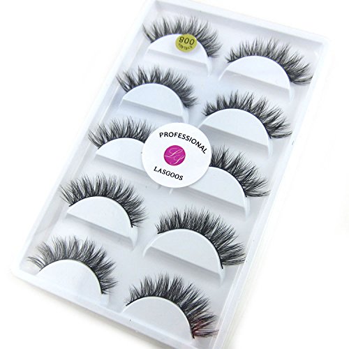 3D Real Mink False Eyelashes LASGOOS 100% Siberian Mink Fur Cruelty-free Luxurious Natural Cross Winged Fake Eye Lashes Makeup 5 Pairs/Box L008-5