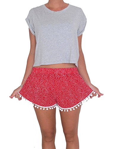 (SDolphin)/Women/Shorts/DIRECT FROM USA/SDolphin Women's High Wais ted Pompom Tassel Ball Floral Beach Shorts Pants