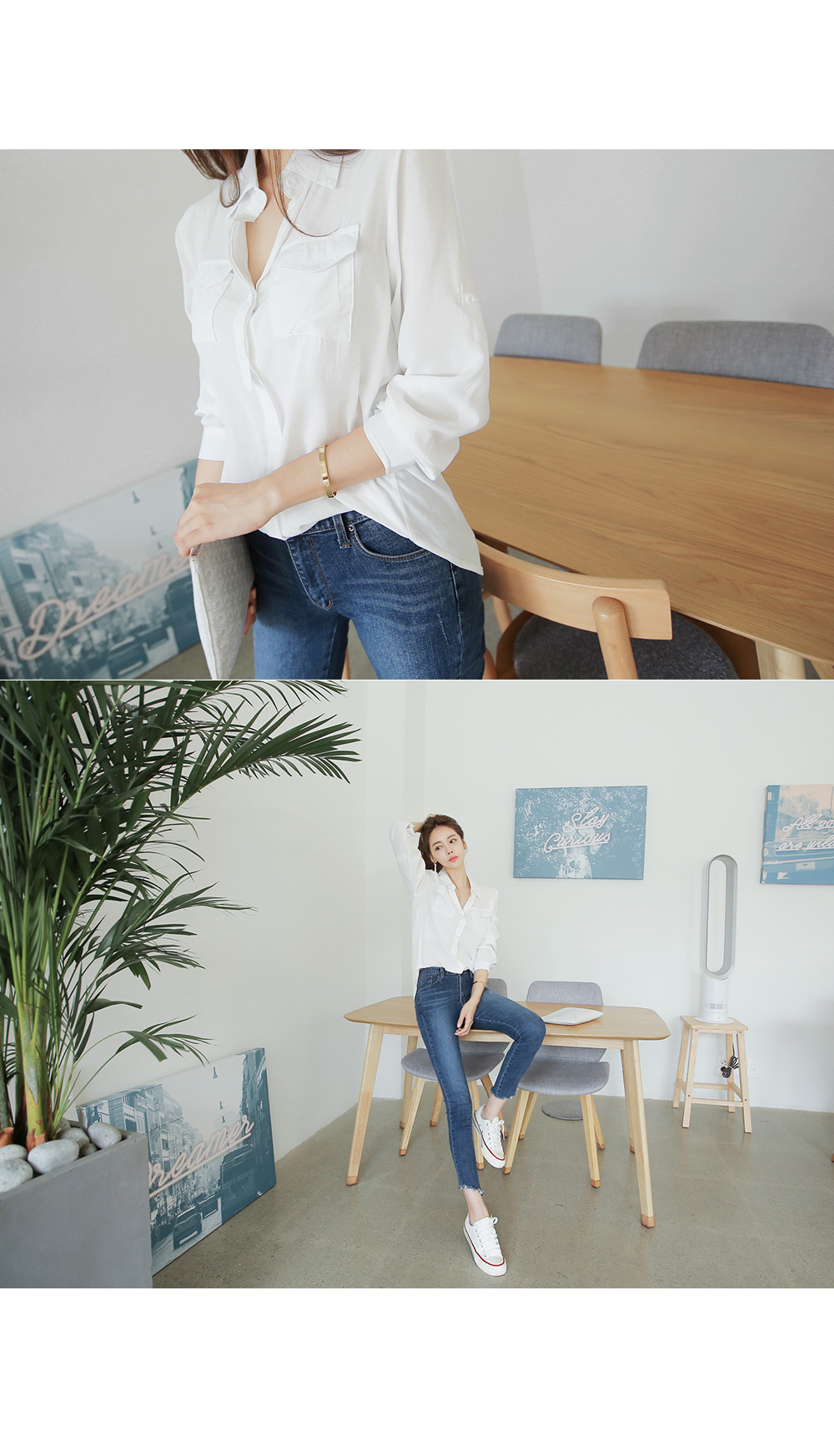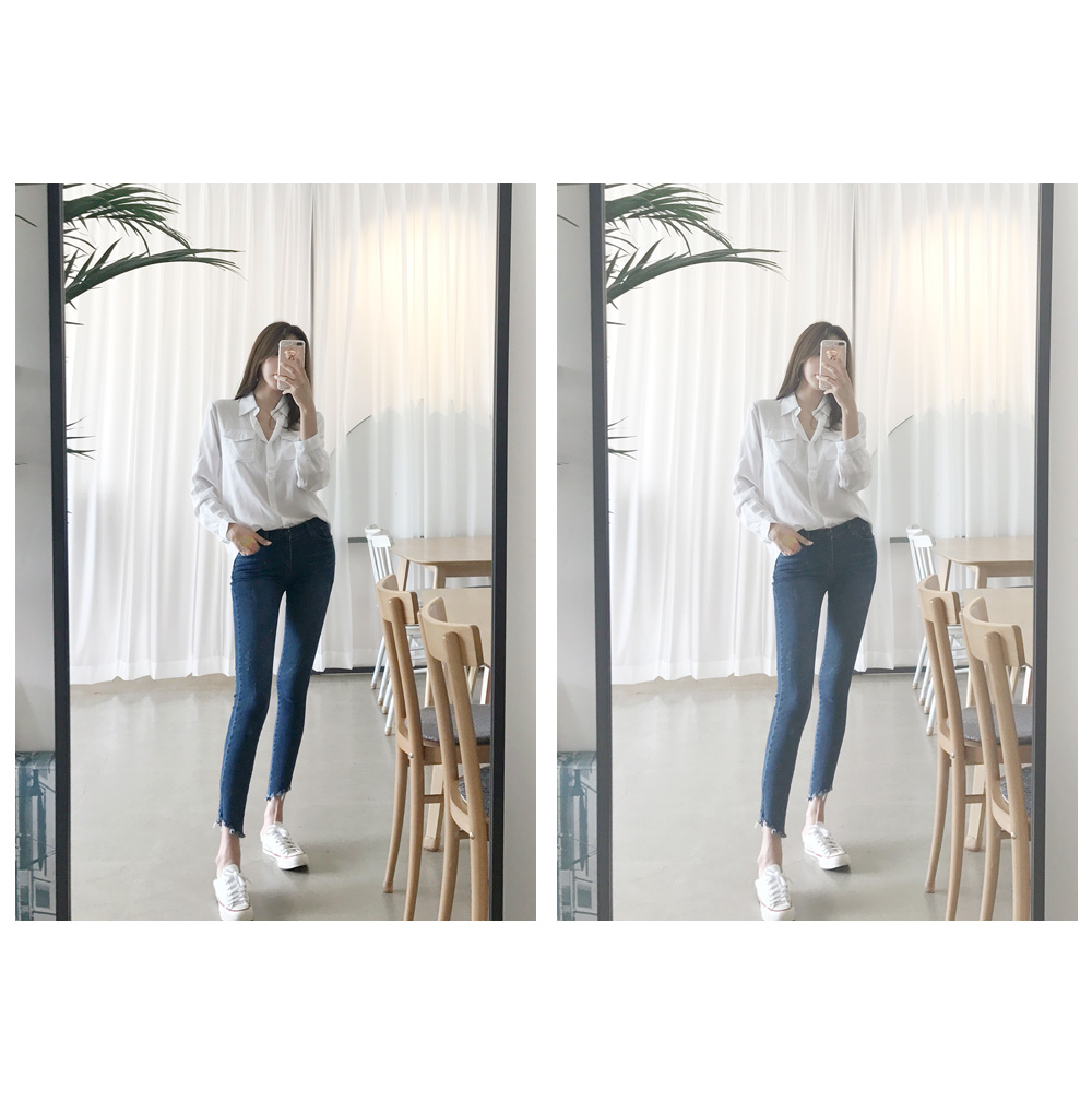 소매에 단추 디테일로 롤업하여 착용 할 수 있으며