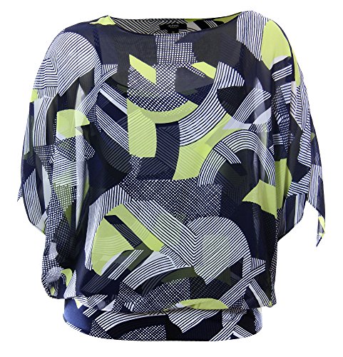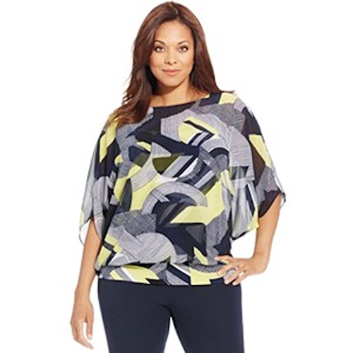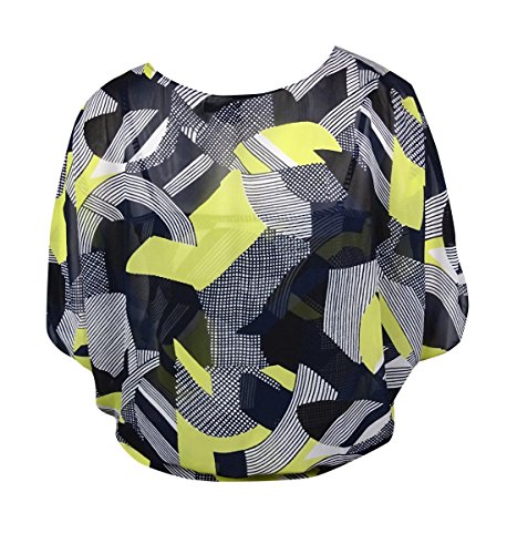 Product DescriptionBlouse features printed chiffon fabric, blouson style, short dolman sleeves, scoop neck, attached cami/lining, and pullover style.0