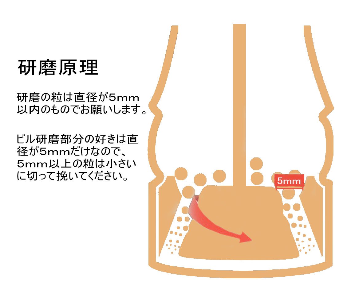 Recommended particle size of spice is 5.5 mm or less Recommended (If it is too large, you can not rub well)