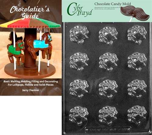 Cybrtrayd "Pretty Rose with Leaves" Fruits and Vegetables Chocolate Candy Mold with Chocolatier's Guide