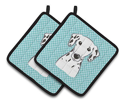 Caroline's Treasures Checkerboard Blue Dalmatian Pair of Pot Holders BB1148PTHD, 7.5HX7.5W, Multicolor