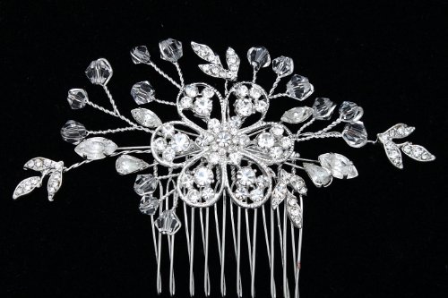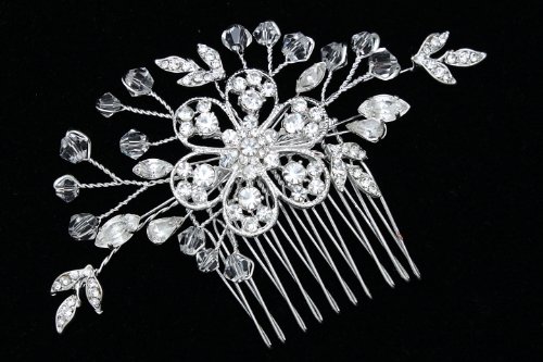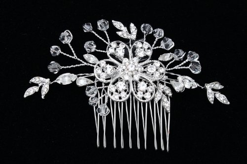 Handmade Rhinestone Crystal Beaded Bridal Wedding Tiara Hair Comb - Silver Plated FC027