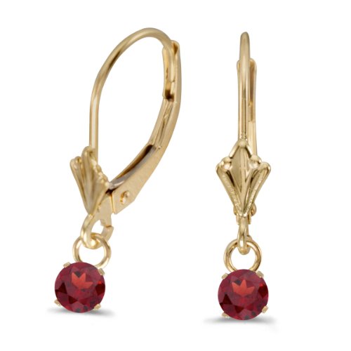 Beautiful 5mm garnet leverback earrings set in 14k yellow gold. The perfect gift for any occasion or to add a pop of color to your personal style.