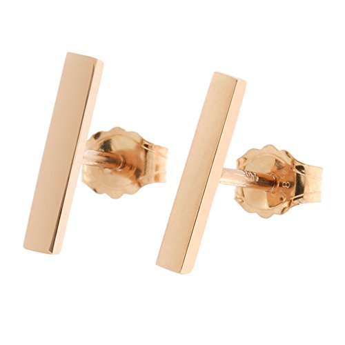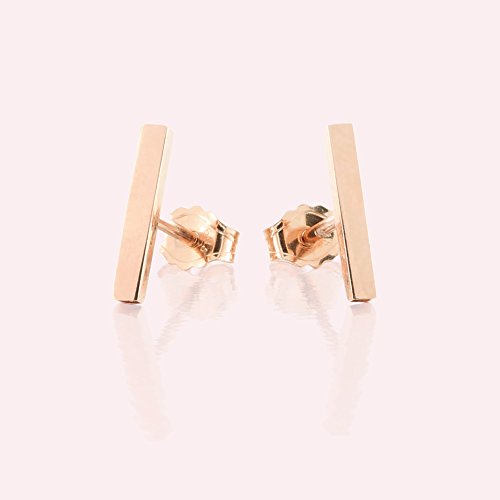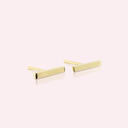 These classic bar earrings are designed to be minimalist but substantial. So instead of using a cheaper/easier way of cutting the shape out of a sheet of gold, these earrings are cast to make them not flat, but rather a real three dimensional shape. It is more comfortable to wear and to sleep in (no sharp corners will poke your ear), as well as easier to hold on to when putting them on.