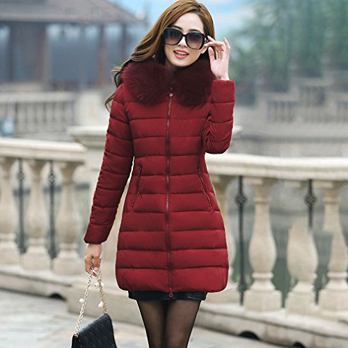 -. Title : Honel レディース 綿ダウンジャケット レディーズ  シルエットコート ダウン ジャケット 防寒服 レディース 冬物 ロング コート 防風 ひざコート 秋冬 ダウンジャケット 大きいサイズ Lサイズ 素敵 防寒 コート (ワインレッド)