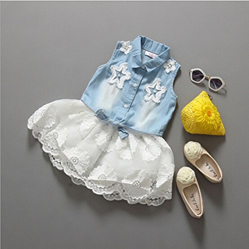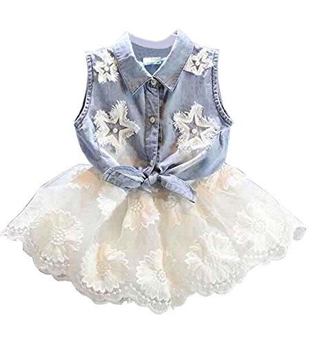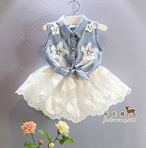-. Title : Summer Kids Girls Denim Vest+ White TUTU Lace Chiffon Skirt Dress