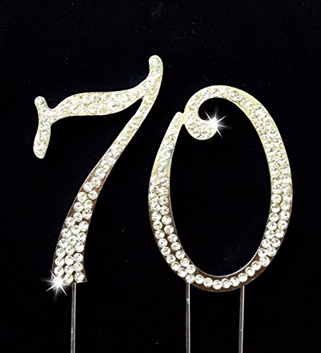 70th Birthday / Wedding Anniversary Number Cake Topper with Sparkling Rhinestone Crystals - 2.75