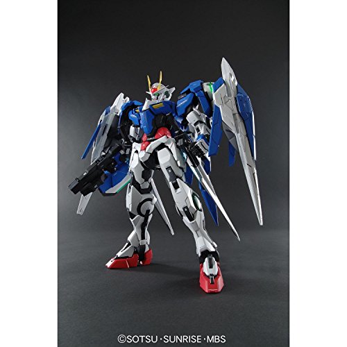 The Prefect Grade (PG) is a line of Gunpla kits of the Mobile Suits in the Gundam meta series. The PG line has significant external and internal details, and recent ones have featured separately sold gimmicks, such as LEDs. The 00 Raiser joins the highly detailed and complex PG series. The iconic twin GN drives are pre-assembled and feature both a light-emitting diode (LED) system and a motorized spinning gimmick that can be turned on and off. Eyes also comes with LED which can be turned on and off at will. Shoulders, elbows, wrists, and knees, have hidden clutch gimmicks behind the GN condensers to help hold poses due to the immense weight of the finished model kit. Detail of the inner skeleton features new styling complete with GN cables running throughout the body. Legs' swinging structures expand the movability. Fully equipped with beam sabers, GN Sword III featuring translucent green plastic, and chromed plastic on the GN Sword II which can also double as rifles. Translucent pink blades are included for the GN swords and along with 4 original new weapons for the O Raiser support craft. O Raiser and 00 Gundam can successfully combine with latching mechanisms to form 00 Raiser. 0 |