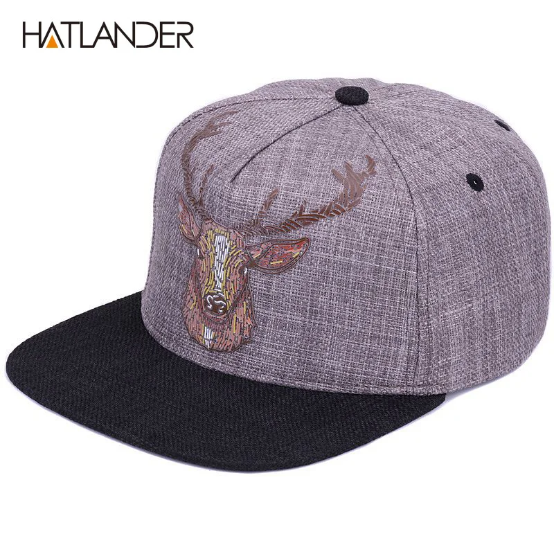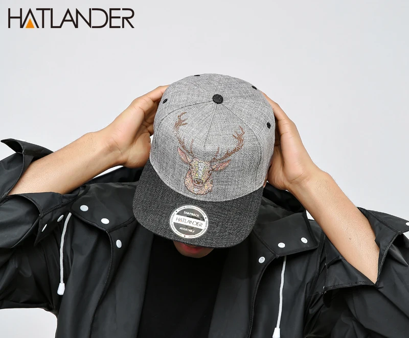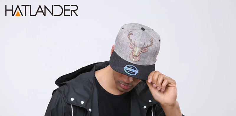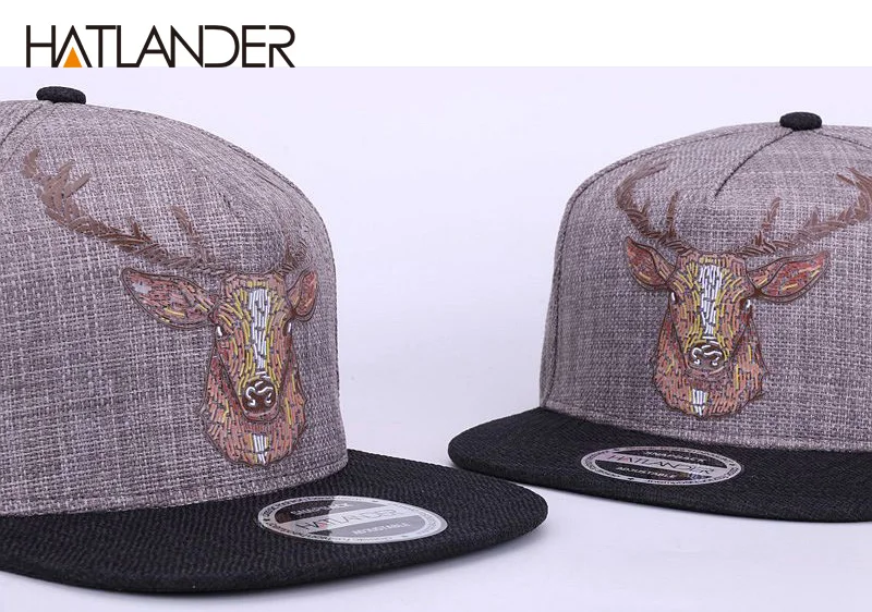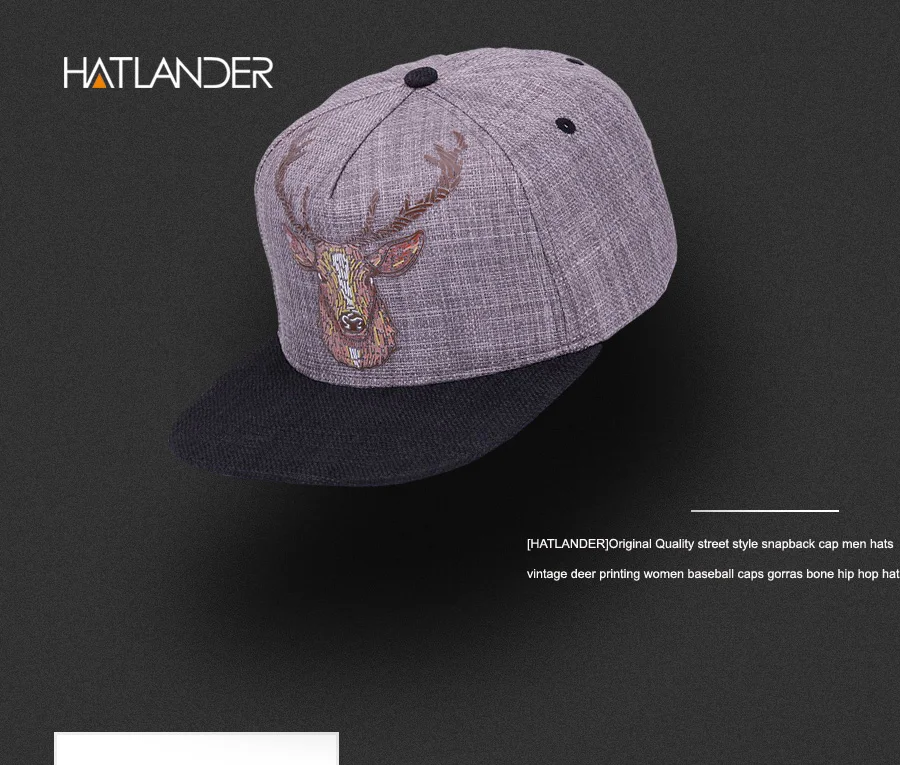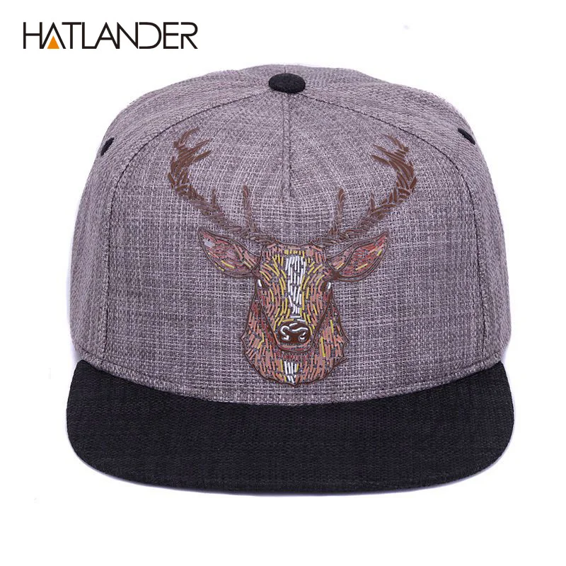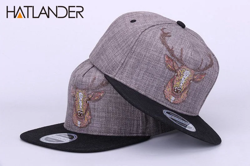 Flat brim cap:vintage deer printing caps