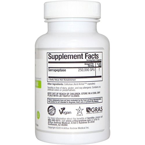 Arthur Andrew medical serretia is the world's strongest serrapeptase with a minimum activity of 250,000 SPU's per dose.