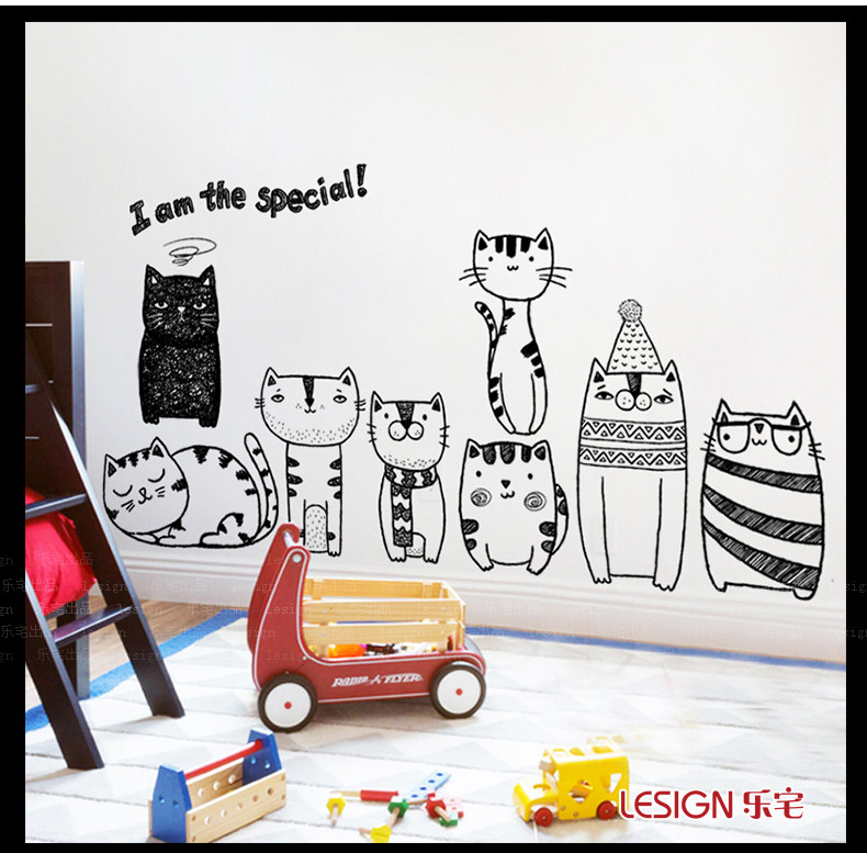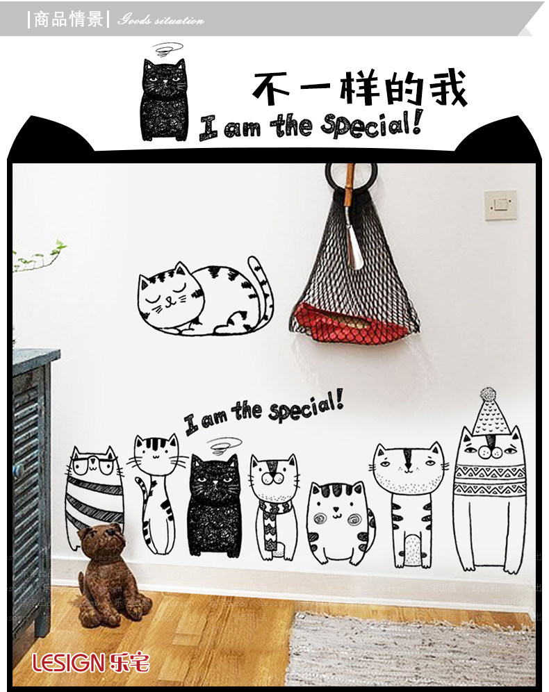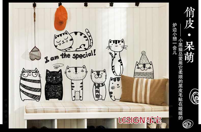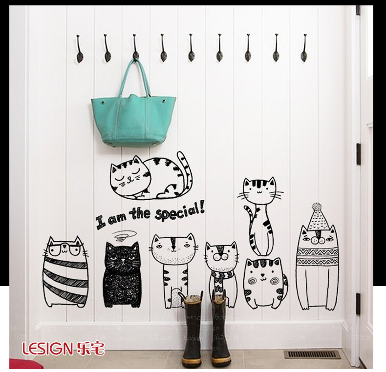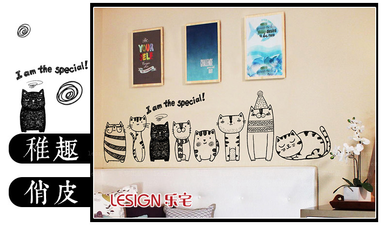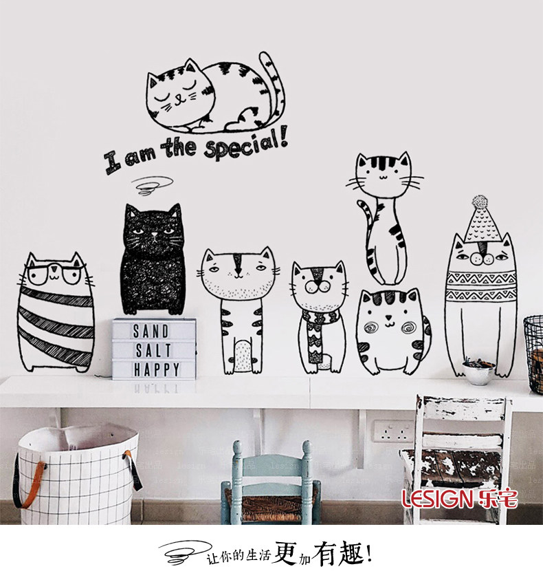 个性客厅卧室时尚餐厅走廊楼梯装饰品贴画创意可爱童趣猫咪墙贴纸