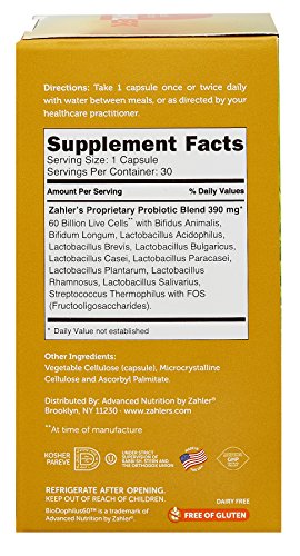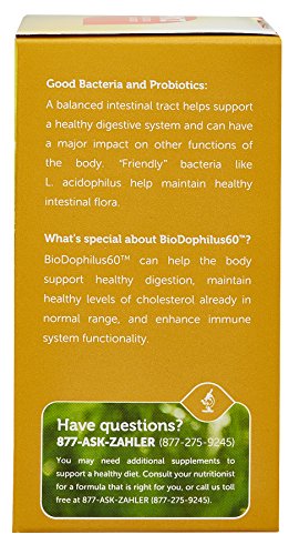 L. acidophilus exists naturally in the body, mostly found in the upper gastrointestinal tract known to be a "friendly bacteria", L. acidophilus helps maintain healthy intestinal flora, leading to better overall digestion and immune function by cultivation an environment that staves off bad bacteria. With a proprietary blend of 14 probiotic strains that are live at the time of manufacture-including eight billion lactobacillus acidophilus colony forming units-Zahler's Biodophilus helps support better digestion. Biodophilus also helps recolonize the intestines with healthy bacteria, improving the body's immune function, particularly after antibiotic use, as antibiotic kill off all bacteria indiscriminately.Feature