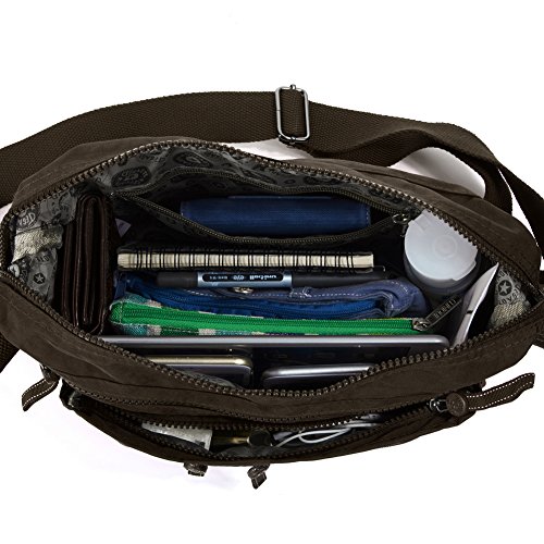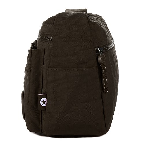 Oakarbo says:You need a do-it-all crossbody in your life¡and here it is. It's made with crinkle nylon to keep it lightweight and long-lasting and adorned with a couple of zip pockets on the outside for extra convenience.