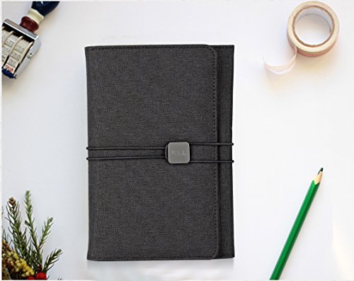 GEOTEL Notebook, Daily Planner, Multi-Function & Recyclable Fabric Cover Notebook Interior Pockets for Cards, Cash, Cheque etc., Perfect for Diary or Daily Writing (7.6"x 5.3"x 1.2", Dark Gray)