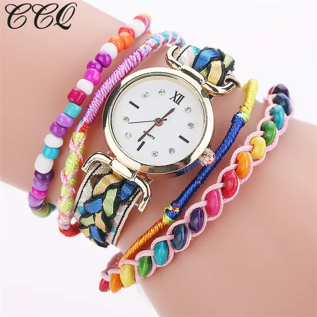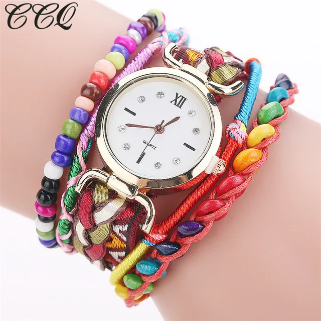 | [해외] CCQ 브랜드 패션 여성 드레스 다채로운 수제 빈티지 팔찌 시계 2017 새로운 캐주얼 보석 시계 럭셔리 시계 드롭 배송 |