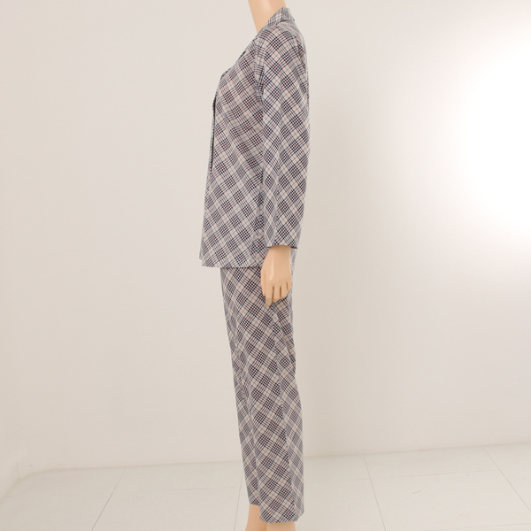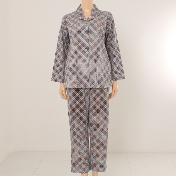실켓가공된 원단의 터치와 고급스러운 칼라감의 체크 패턴이 조화를 이룬 파자마세트입니다.