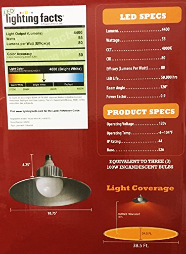 4400 LUMENS - This bright bulb has a light output of 4400 lumens, 55 watts, and CCT 4000K.