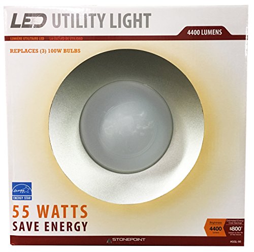 StonePoint LED Lighting Utility Light GGL-50 Energy Efficient Bright Daylight Bulb with Shroud Fits Standard Edison Base 4000K and 4400 Lumens - for Shop Light, Garage Light, Workshop