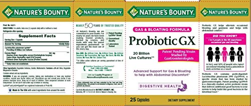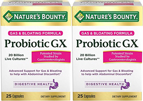 Nature's Bounty Probiotic GX Gas & Bloating Formula, Capsules 25 ea (Pack of 2)