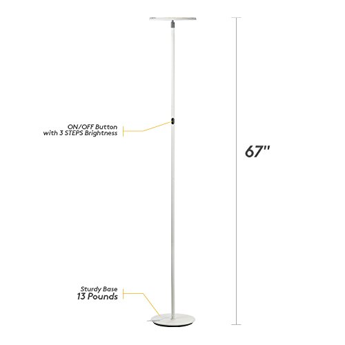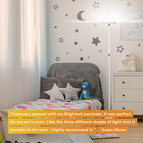 EASILY ADJUST COLOR TEMPERATURE AND BRIGHTNESS LEVEL: Capable of both mood and task lighting, Brightech's SKY 30 Flux LED Torchiere Floor Lamp solves your home or office needs brightly and efficiently. This lamp allows you to select your preferred color temperature at 3,000K Warm White, 4,000K Cool White or 5,000K Daylight white. The dimmer then allows you to easily adjust the brightness with the touch of a finger to achieve the perfect lighting for your space.