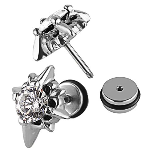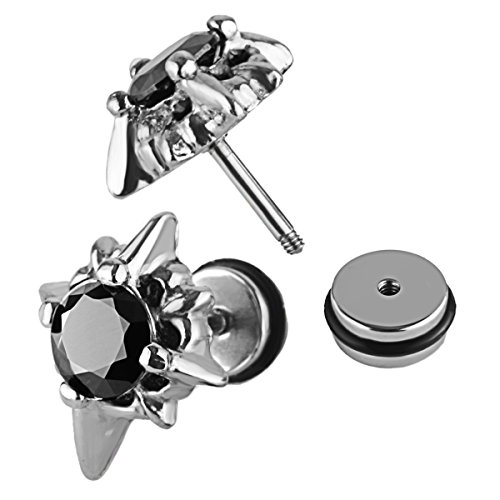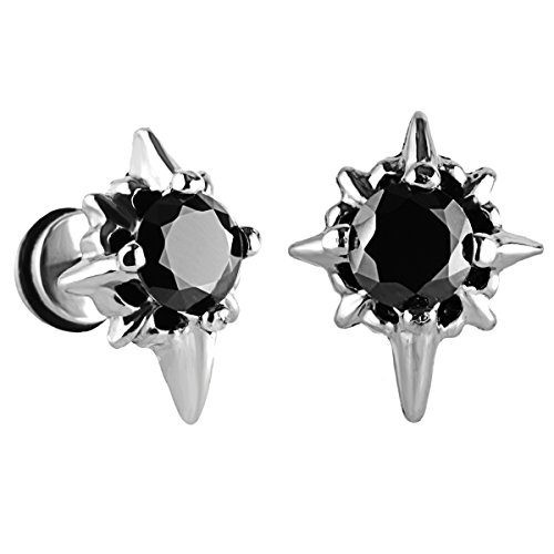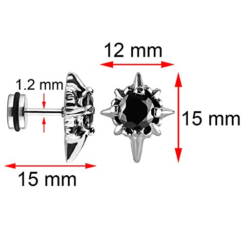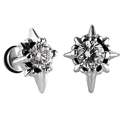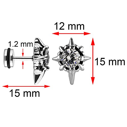 -. Feature : Material: Hypoallergenic Stainless Steel; Stone: Cubic Zirconia / Star Cross Size: 15 x 12 mm; Cubic Zirconia Diameter: 6mm; Earring Pin Thickness: 1.2mm (18 Gauge) / Quantity: 1 Pair / Box / Style: Star Cross Stud Earrings Screw on Back Earrings