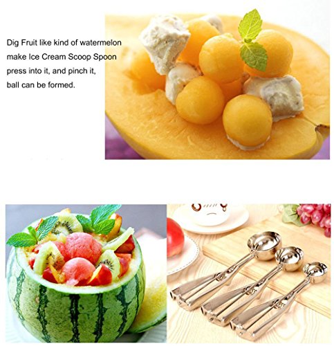 INTBUYING Ice Cream Scoop Spoon with Trigger Mechanism 3pc Stainless Steel for Squeeze Ice Cream or Fruit DIY Good Tool