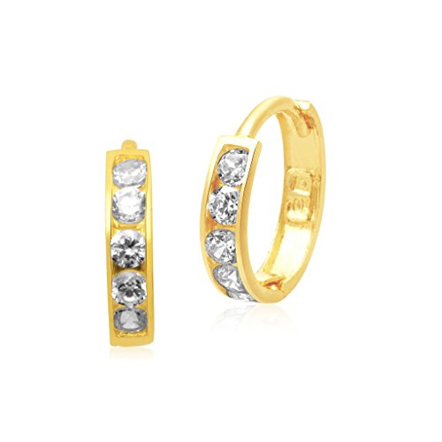 10kt Yellow gold hoop earrings with white Swarovski Zirconia. Secured with casted post.