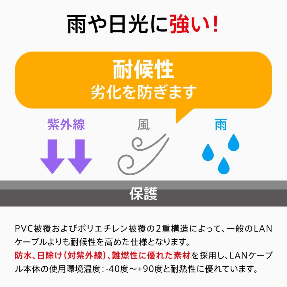 Outdoor LAN cables are available for CAT 5e, CAT 6A.