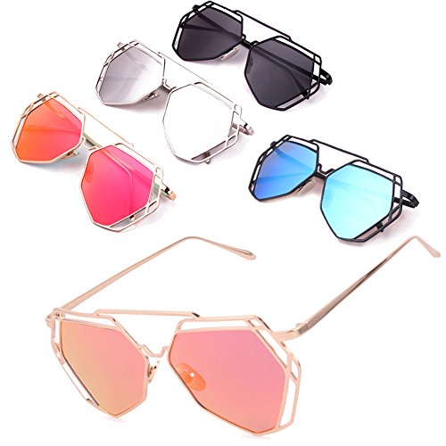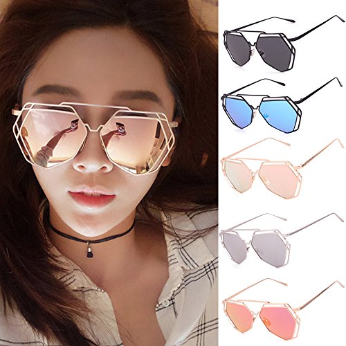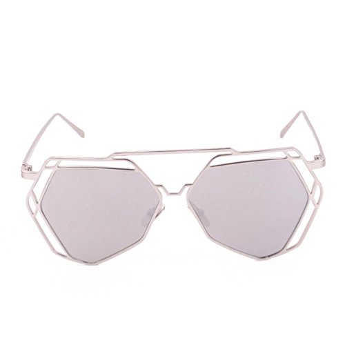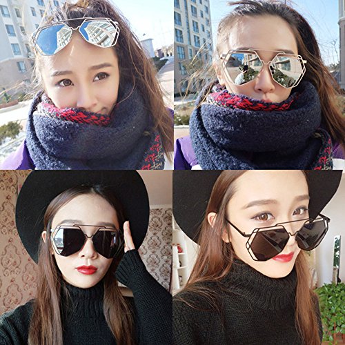 (Transer)/Accessories/Scarves/DIRECT FROM USA/Transer Twin-Beams Geometry Design Women Metal Frame Mirror Sunglasses Cat Eye Glasses