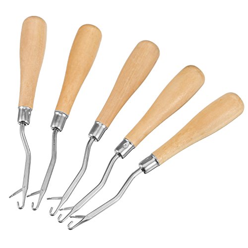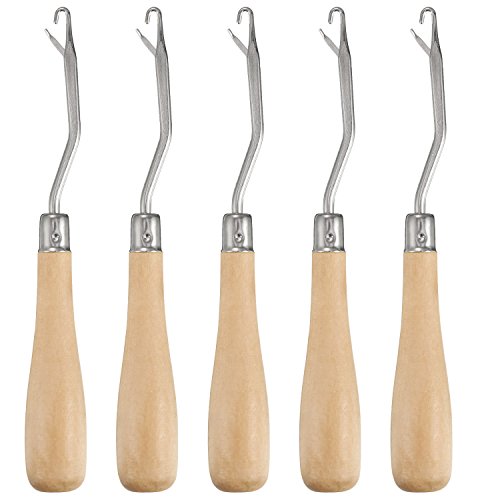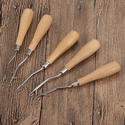 Pangda 6.2 Inch Wooden Bent Latch Hook Crochet Needle Hook Tool, Set of 5