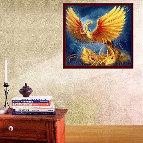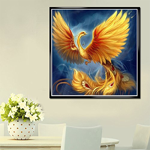 Fipart DIY diamond painting cross stitch craft kit. Wall stickers for living room decoration.Phoenix(14X14inch/35X35CM)