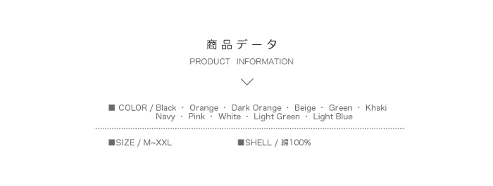 Khaki ・ Navy ・ Pink ・ White ・ Light Green ・ Light Blue (11色展開)
