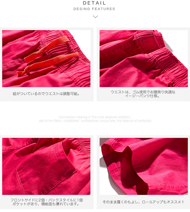 【サイズ】ウエスト / ヒップ / 股上 / モモ幅 / 裾幅