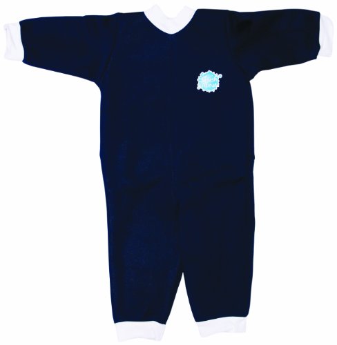 This special baby wetsuit gives extra cover by having long arms and legs yet is soft and easy to put on due to the deep back opening. Soft, fleece lined, nylon. Deep back opening with hook and loop fastening for ease of dressing.Especially good for babies who need the extra warmth for whatever reason. Please note that for protection against leaks in the pool the Warm-in-one should be used in conjunction with our Happy Nappy or an alternative swim nappy. Sizing - The Warm-in-One should be a snug fit. However if your child is slightly above average in size, please choose the next size up.