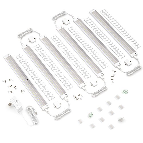 [New] EShine White Finish 6 Panels 12 inch LED Dimmable Under Cabinet Lighting Kit! Hand Wave Activated - Touchless Dimming Control - Bright and Stable - Easy to Install - Deluxe Kit, Warm White