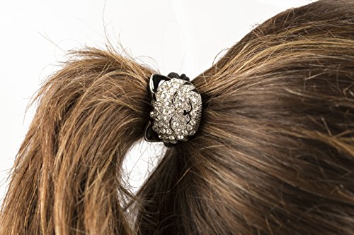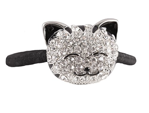 TWO Crystal Cat Faces on an elastic ponytail holder. Each kitty cat is a little over an inch in size, just the perfect size to compliment your casual or dressy hairstyle. Imagine yourself wearing a cute, sophisticated kitty in your hair, riding along with you through your day. Enjoy the compliments as people notice and remark on your unique style and your love for cats. Each ponytail holder is individually wrapped in plastic for added protection and the five ponytail holders are shipped together in one Jasmines Gifts velvet pouch. Great for sending direct as gifts. Made exclusively by Jasmines Gifts, a Rhode Island company. Sold exclusively on Amazon by Prime Shipping Direct and available nowhere else. We ship to all Amazon customers and we have a Complete Satisfaction Guarantee Policy, so if you are unsatisfied for any reason whatsoever, please feel free to return the ponytail holders for a refund.Feature