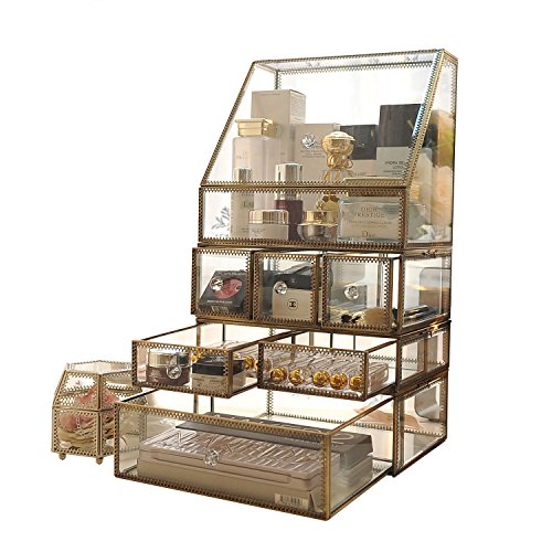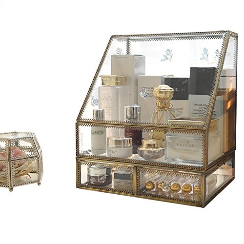Antique Clear Glass&Brass Metal Jewelry and Cosmetic Storage Makeup Organizer Large Drawer Space Stylish Non-acrylic Saving Display (1 26mm drawer)