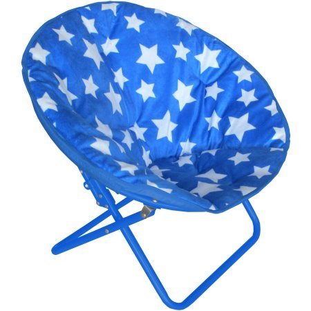 Product Description Whether you are studying, hanging out with friends or just lounging around, this American Kids Faux-Fur Saucer Chair makes a fun, comfy addition to any room. It features a soft, wide seat that is ideal for relaxing or watching a movie. The American Kids saucer chair's cushion is made from durable, plush 100-percent polyester upholstery. The faux-fur material is soft and cuddly to the touch. A foldable steel frame folds flat when not in use, making it easy to hide this blue saucer chair out of sight without taking up a significant amount of room in tight spaces. Add additional seating to living rooms, bedrooms, rec rooms and other areas of your home or apartment with this fun furniture piece. The American Kids Faux-Fur Saucer Chair's selection of multiple prints makes it simple to choose the right design for any space. Add a fun, cozy touch to dorm rooms, lofts, reading nooks and more with this comfy seat. 0